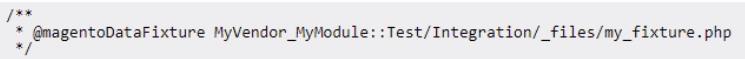 An Adobe Commerce developer is writing an integration test. They checked some Integration Tests for Magento core modules for reference and noticed that they use data fixtures initialized by adding annotations to test classes. For example: The developer wants to add their own fixture to test a MyVendor_MyModule they created. Which steps will make this possible?