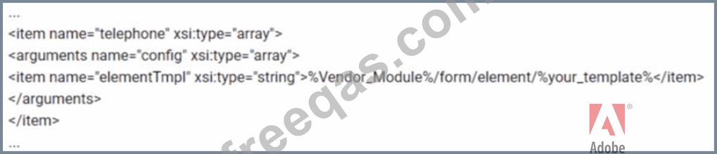 A client would like to add an image icon in front of the telephone field to the shipping address form on a checkout page. What is the correct way to modify the Ul component to set a custom template file for the field?