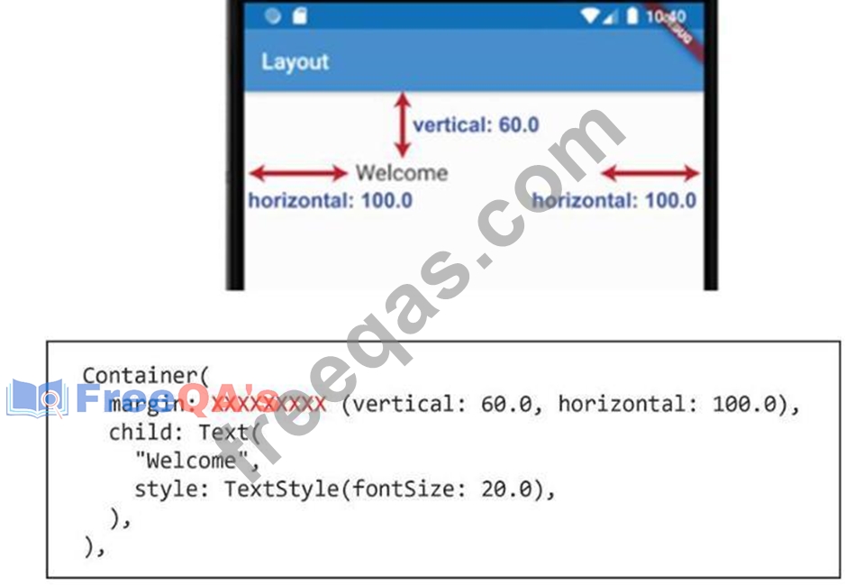 As illustrated in the image in this question, to get the Text value: "Welcome" in this app interface, you may configure the Text widget as a child widget of the Container widget in the following code: