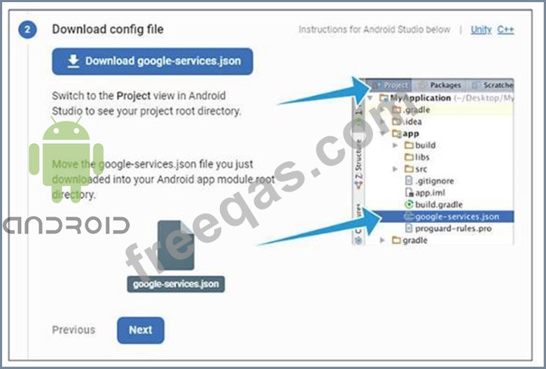 While configuring your Android app on Firebase web site, you should download the google- services.json file from Firebase web site and add it to your Android app files as illustrated in the image of this question.