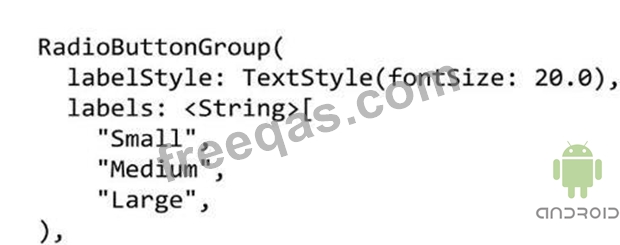 Check the image in this question first, then assume that you added this Dart code in a Flutter app to create three radio buttons to your app interface. However; you got an error message. There is something that is still missing in this code.