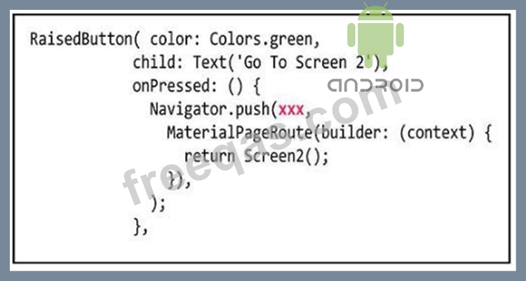 The image in this question includes a Dart code for a Raised button widget. When the app user taps this button, the app will display the content of Screen2( ) class of this app using Navigator.push navigation technique.