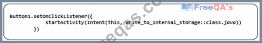 What is the result of clicking Button1 in the code which is illustrated in the following image? Assuming that write_to_internal_storage is the name of an activity that allows users to write to internal storage.