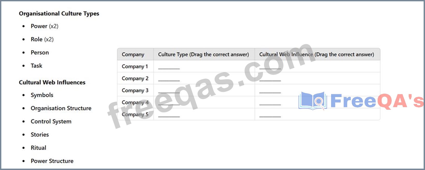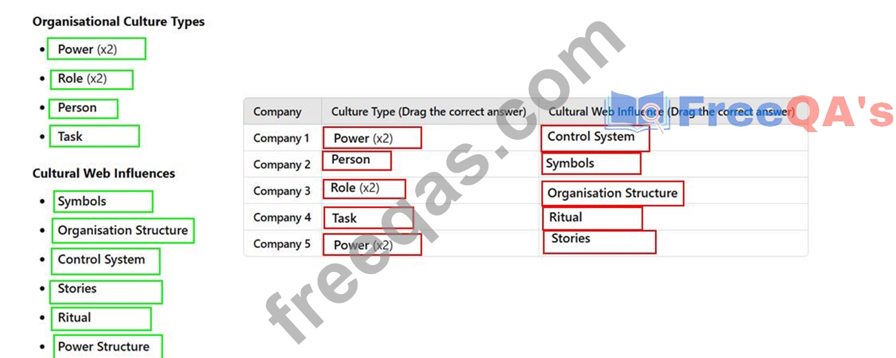 Your task is to match the correct type of organisational culture and cultural web influence to each company.