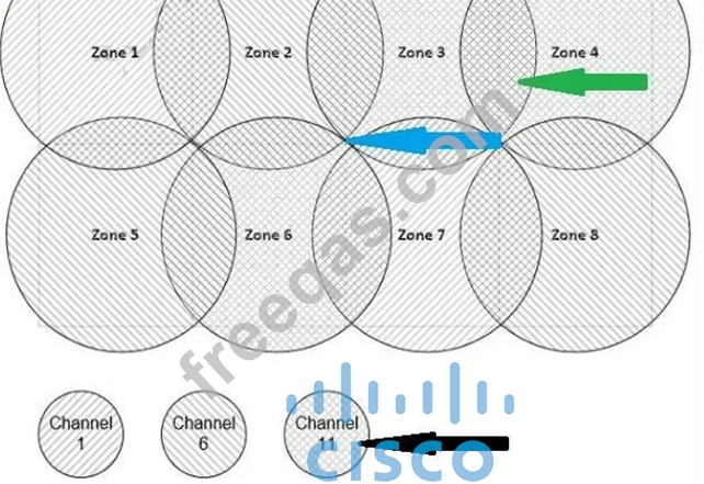 Refer to the exhibit. Between which zones do wireless users expect to experience intermittent connectivity?