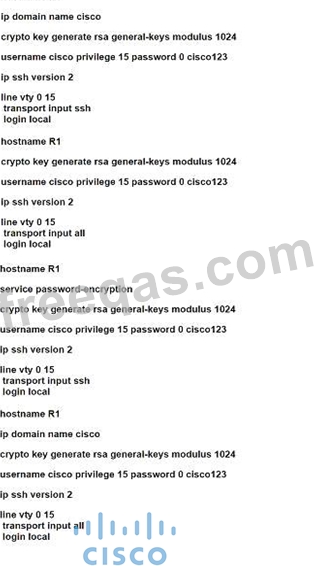 An engineer is configuring SSH version 2 exclusively on the R1 router. What is the minimum configuration required to permit remote management using the cryptographic protocol?