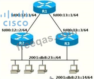 Packets toward host 2001:db8:23::14 preferably must be forwarded through R3.