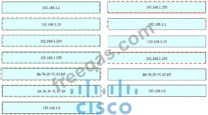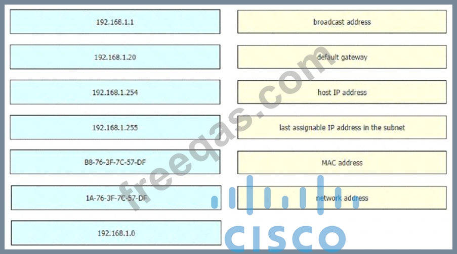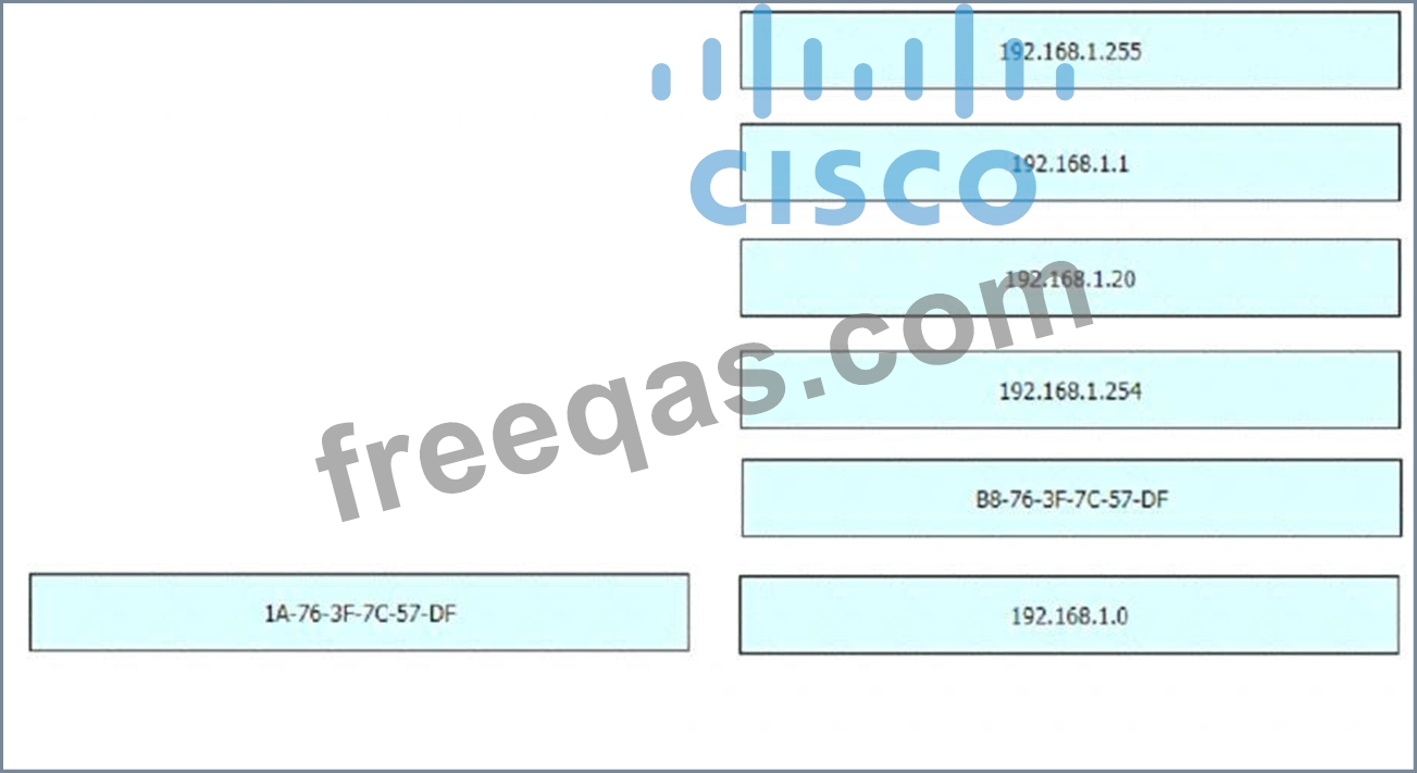An engineer is required to verify that the network parameters are valid for the users wireless LAN connectivity on a /24 subnet. Drag and drop the values from the left onto the network parameters on the right. Not all values are used.