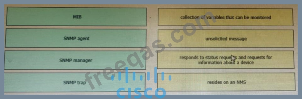 Drag and drop the SNMP components from the left onto the descriptions on the right.