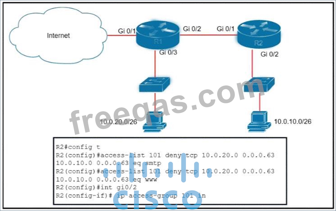 changes stop outbound traffic on TCP ports 25 and 80 to 10.0.20 0 26 from the 10.0.10 0/26 subnet while still allowing all other traffic? (Choose two )