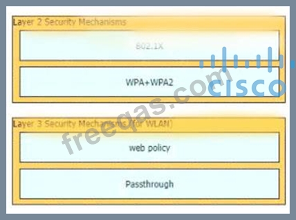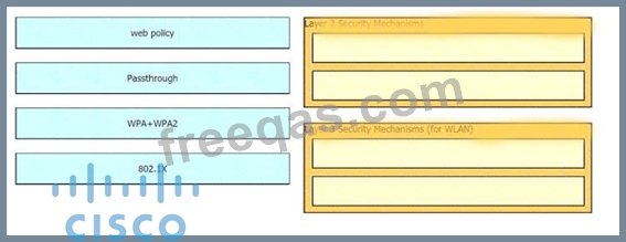 Drag and drop the Cisco Wireless LAN Controller security settings from the left onto the correct security mechanism categories on the right.