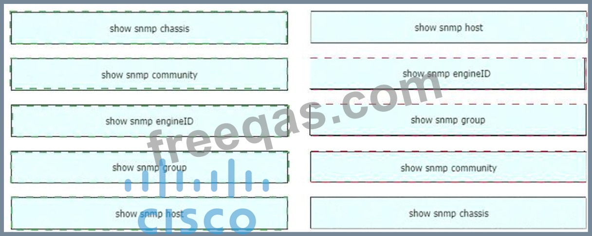 Drag and drop the SNMP manager and agent identifier commands from the left onto the functions on the right