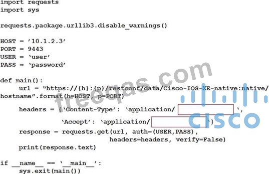 Refer to the exhibit. An engineer creates a Python script using RESTCONF to display hostname information.