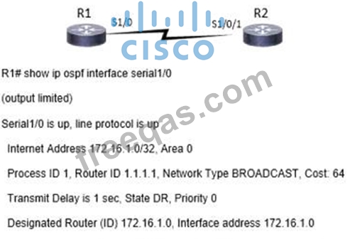 While configuring router 2 with all the default values, a network engineer cannot see any route received in router 1. How should the engineer solve the issue?