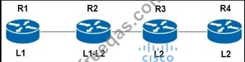 Refer to the exhibit. The four routers in this network have formed adjacencies. Router R2 is an IS- IS level 1-2 router that connects to other areas, and the attach bit is set in the R2 level 1 LSP advertisements to R1. According to the network design, R2 should push level 2 routes from its routing table to the R1 routing table. However, R1 installed a default route in its routing table.
