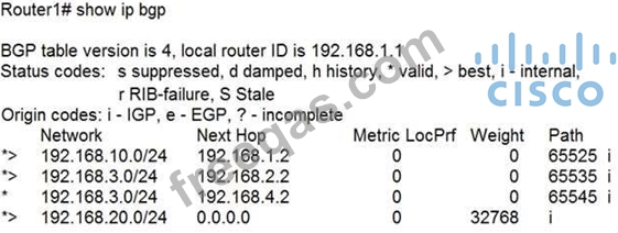 Refer to the exhibit. Which attribute can router 1 alter so that only other iBGP peers prefer to use 192.168.4.2 as the next hop for route 192.168.3.0/24?