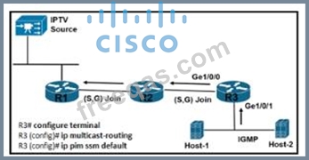 Refer to the exhibit. A network engineer is configuring router R3 to handle multicast streams, but Host-2 cannot send subscriptions messages to the IPTV source. Which configuration must the engineer apply to router R3 so it passes the IPTV stream to Host-2?