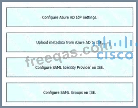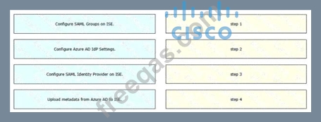 Refer to the exhibit. An engineer must configure SAML single sign-on in Cisco ISE to use Microsoft Azure AD as an identity provider. Drag and drop the steps from the left into the sequence on the right to configure Cisco ISE with SAML single sign-on.