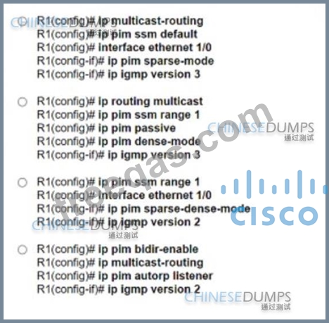 A network operator with an employee ID 4531 26:504 must implement a PIM-SSM multicast configuration on the customer's network so that users in different domains are able to access and stream live traffic. The IGMP version must be enabled to support the SSM implementation. Which action must the engineer perform on R1 to complete the SSM implementation?