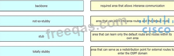 Drag and drop the OSPF area types from the left onto the correct statements on the right