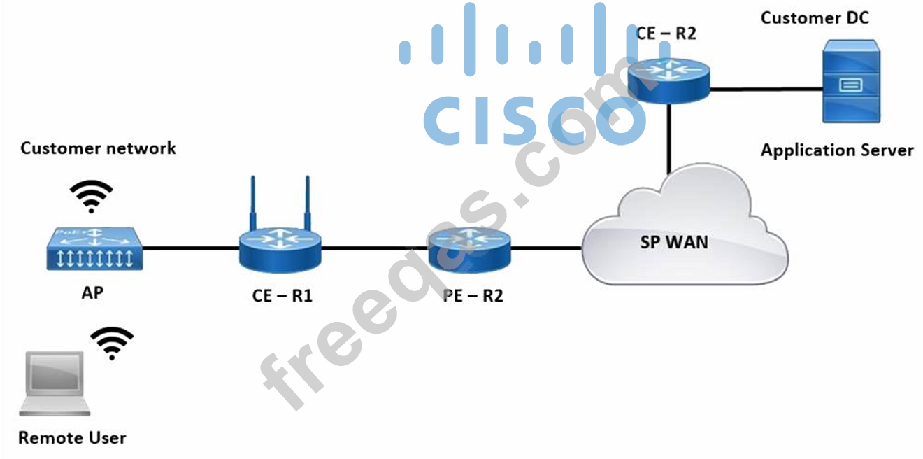 Refer to the exhibit. The application server in the data center hosts voice, video, and data applications over the internet. The data applications run more slowly than the voice and video applications. To ensure that all applications run smoothly, the service provider decided to implement a QoS policy on router PER 2 to apply traffic shaping. Which two actions must an engineer take to implement the task? (Choose two.)
