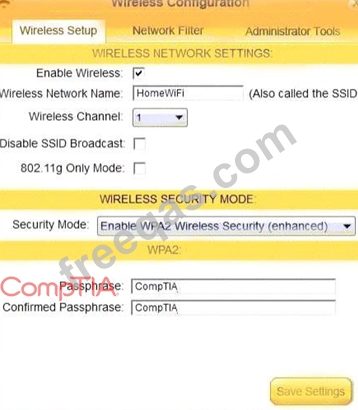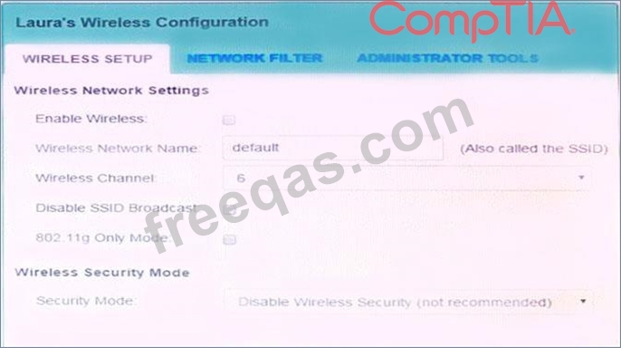 Laura, a customer, has instructed you to configure her home office wireless access point.