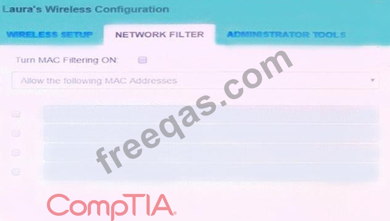 Finally, Laura wants to ensure that only her laptop and Smartphone can connect to the network.