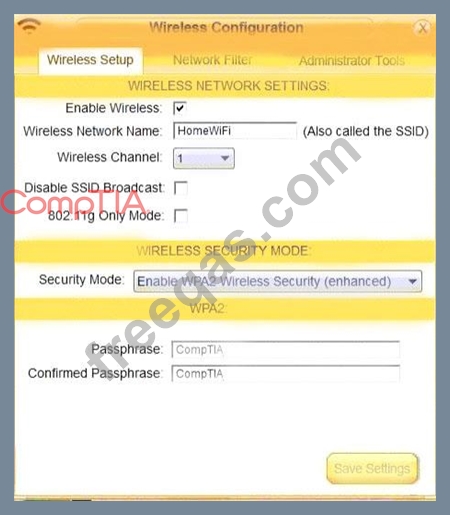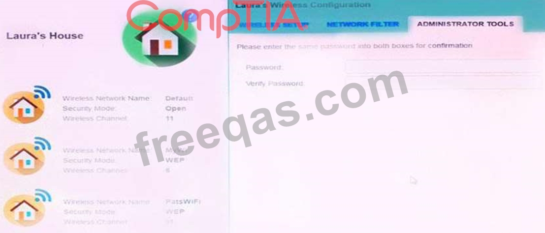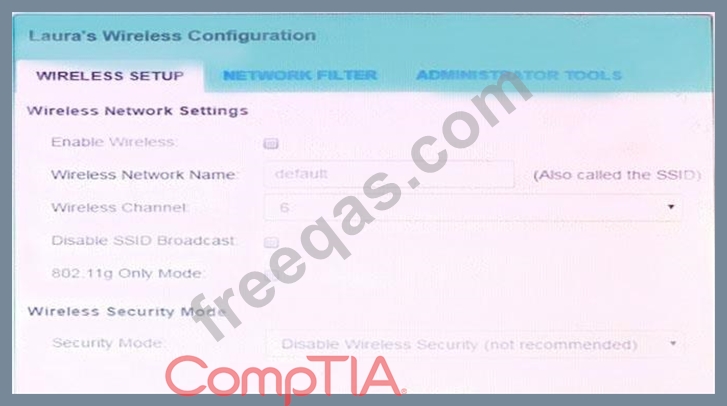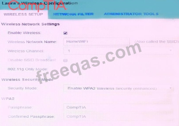Laura, a customer, has instructed you to configure her home office wireless access point.