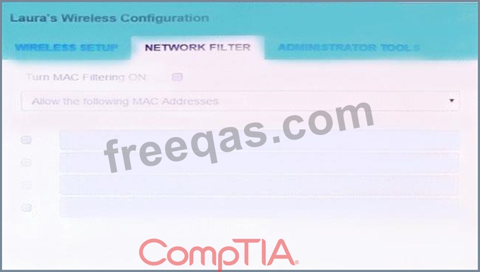 Finally, Laura wants to ensure that only her laptop and Smartphone can connect to the network.