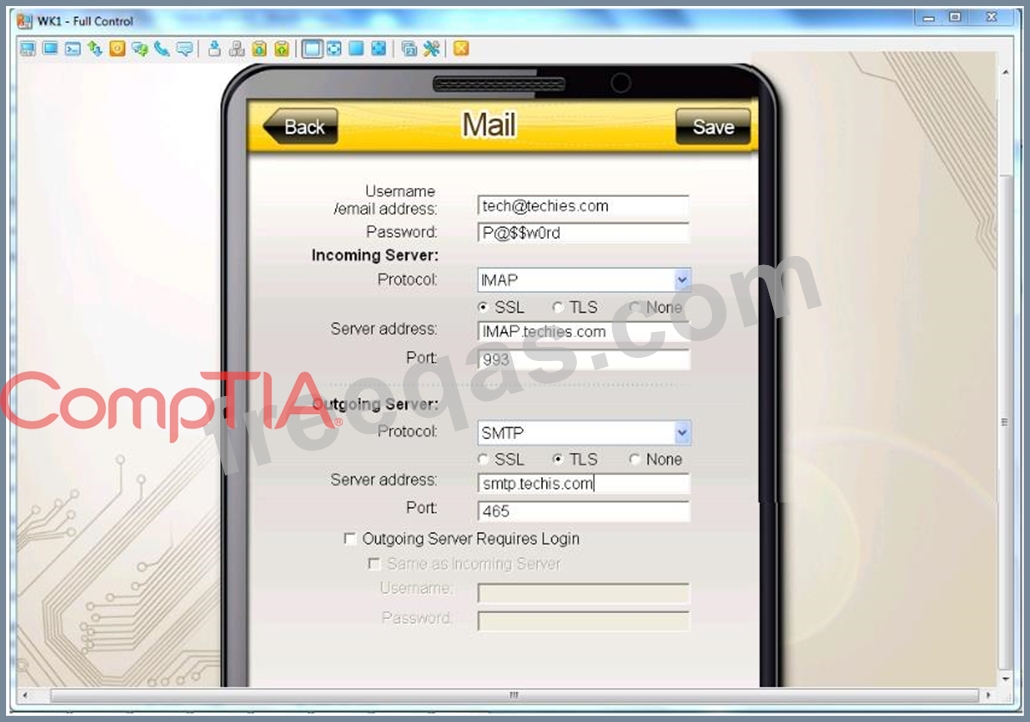 * IMAP techies com Port 993 Security SSL