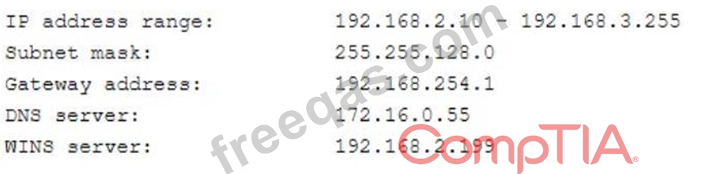 A technician is conguring a new IAN for a client. The technician deploys a DHCP sewer with the following settings