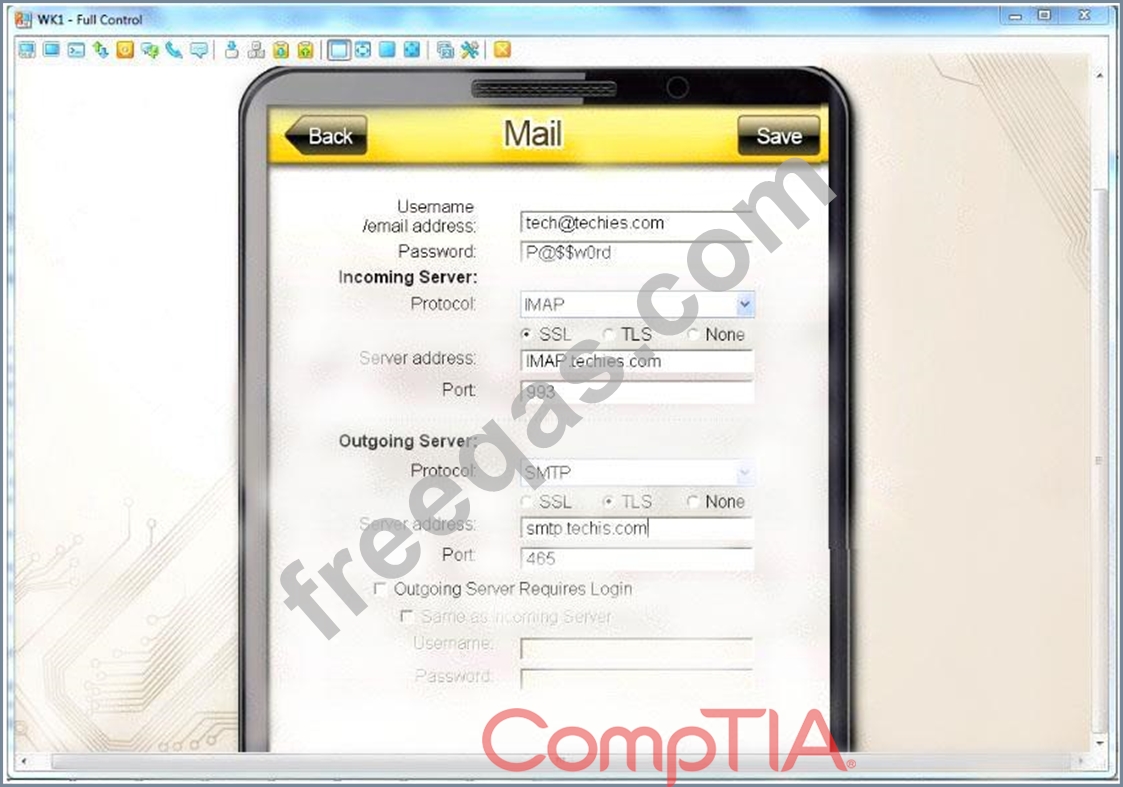 The company's WLAN is broadcasting across the company for easier access. Both incoming and outgoing servers require login credentials.