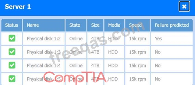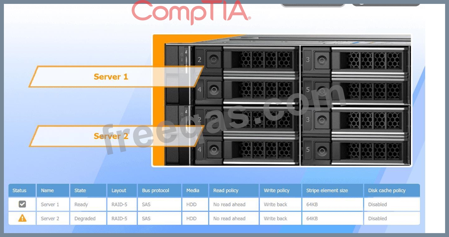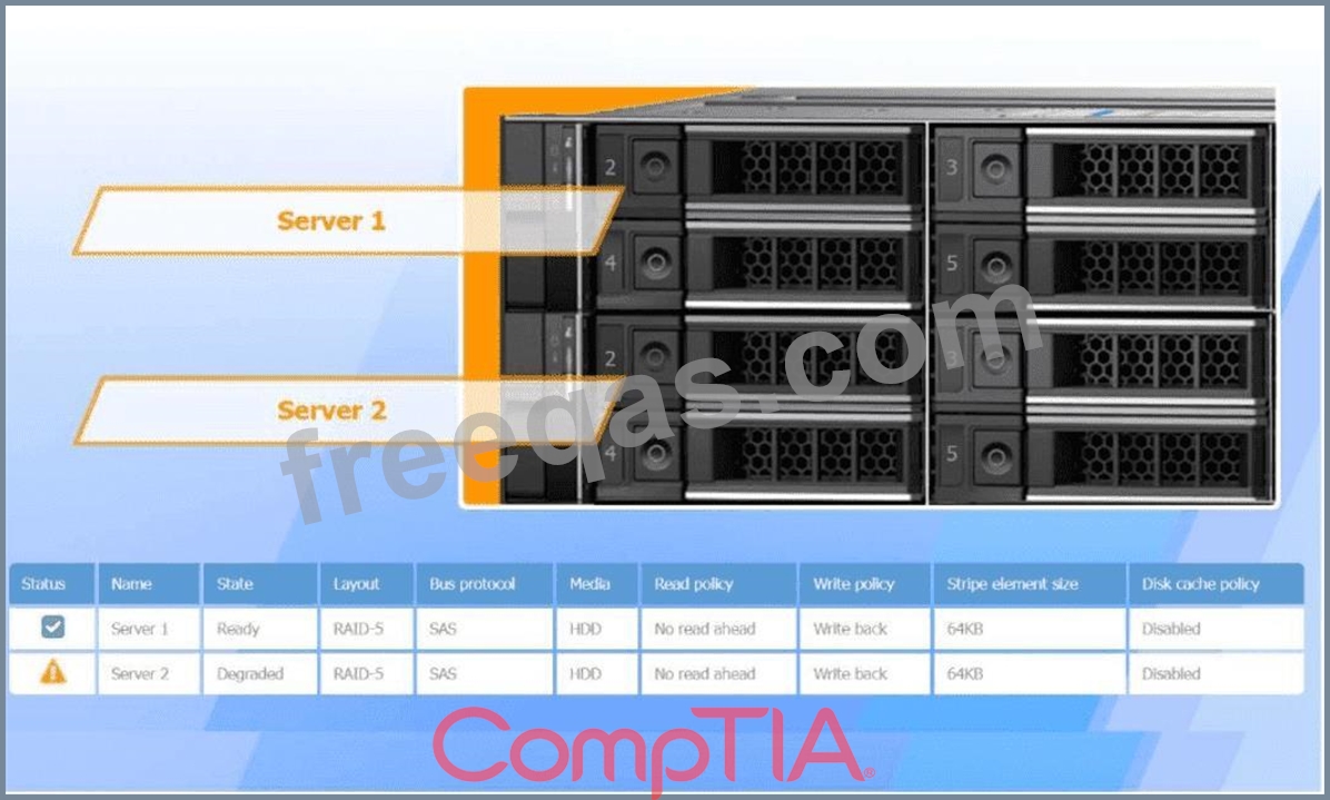 Click on Server 1 and Server 2 and review the information presented in each chart to determine which drives need to be replaced.