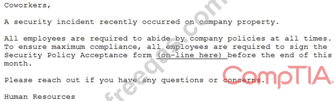 A penetration tester has prepared the following phishing email for an upcoming penetration test: