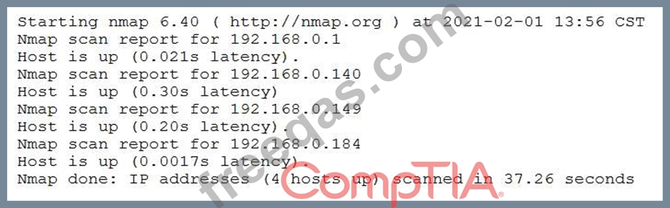 Which of the following commands generated the results above and will transform them into a list of active hosts for further analysis?