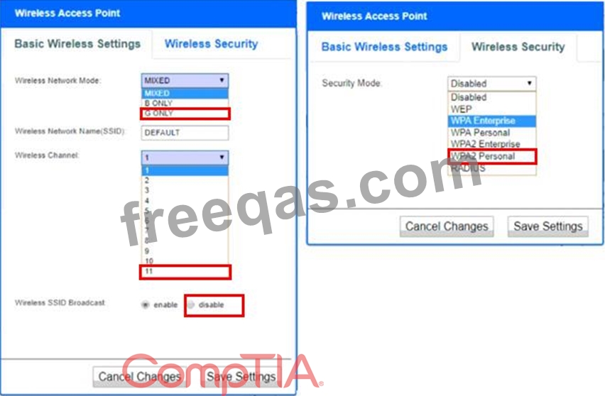 A newly purchased corporate WAP needs to be configured in the MOST secure manner possible.