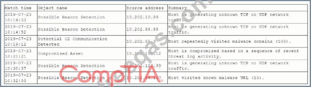 A security analyst is reviewing the logs from a NGFWs automated correlation engine and sees the following: