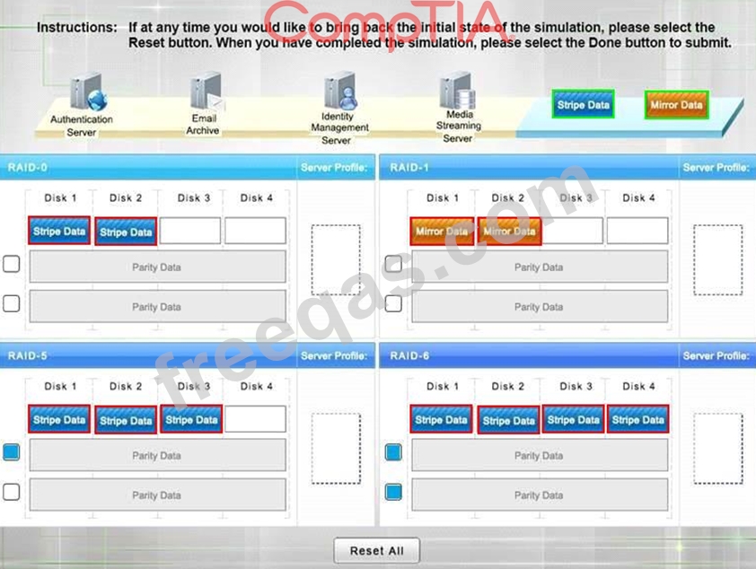 * Review the server profiles and match them with the appropriate RAID type based on integrity, availability, I/O, storage requirements. Instructions: