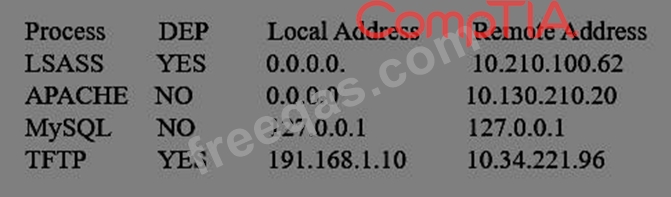 Given the above information, which of the following processes was MOST likely exploited via remote buffer overflow attack?