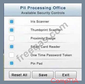 The PII Office has redundant security measures in place. You need to eliminate the redundancy while maintaining three-factor authentication and retaining the more expensive controls.