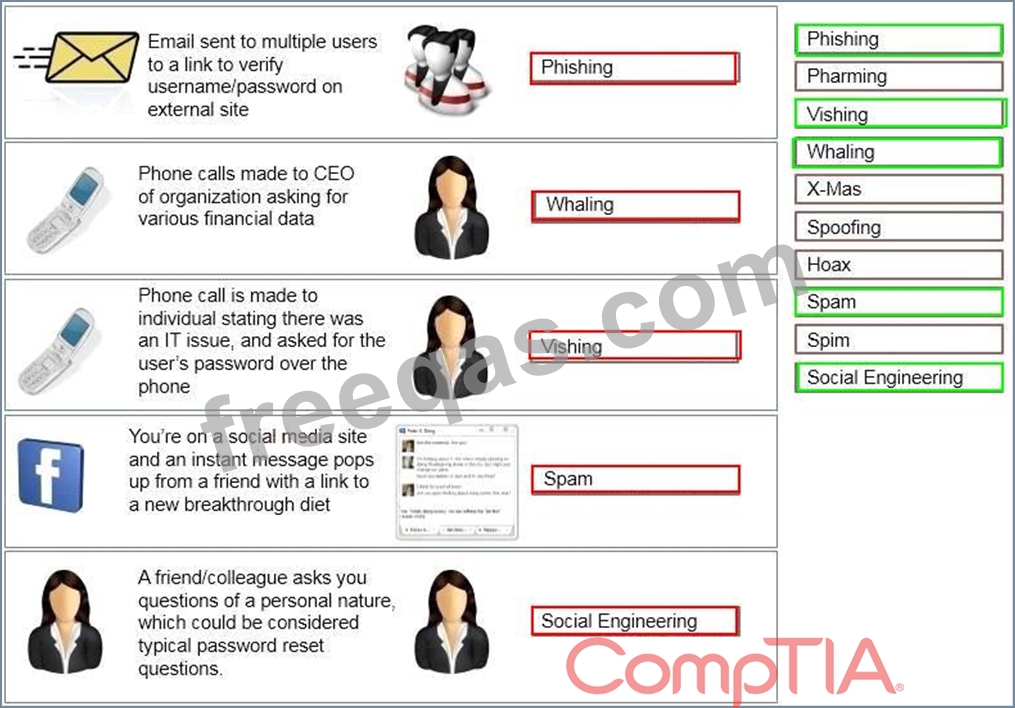 D: SPIM is a term sometimes used to refer to spam over IM (Instant Messaging). It's also called just spam, instant spam, or IM marketing. No matter what the name, it consists of unwanted messages transmitted through some form of instant messaging service, which can include Short Message Service (SMS) E: Social engineering is a non-technical method of intrusion hackers use that relies heavily on human interaction and often involves tricking people into breaking normal security procedures. It is one of the greatest threats that organizations today encounter. A social engineer runs what used to be called a "con game." For example, a person using social engineering to break into a computer network might try to gain the confidence of an authorized user and get them to reveal information that compromises the network's security. Social engineers often rely on the natural helpfulness of people as well as on their weaknesses. They might, for example, call the authorized employee with some kind of urgent problem that requires immediate network access. Appealing to vanity, appealing to authority, appealing to greed, and old-fashioned eavesdropping are other typical social engineering techniques.