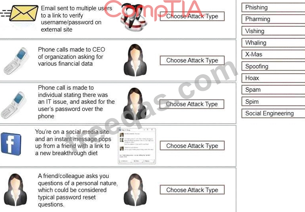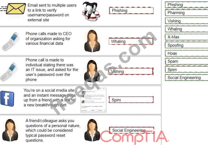 D: SPIM is a term sometimes used to refer to spam over IM (Instant Messaging). It's also called just spam, instant spam, or IM marketing. No matter what the name, it consists of unwanted messages transmitted through some form of instant messaging service, which can include Short Message Service (SMS) E: Social engineering is a non-technical method of intrusion hackers use that relies heavily on human interaction and often involves tricking people into breaking normal security procedures. It is one of the greatest threats that organizations today encounter. A social engineer runs what used to be called a "con game." For example, a person using social engineering to break into a computer network might try to gain the confidence of an authorized user and get them to reveal information that compromises the network's security.