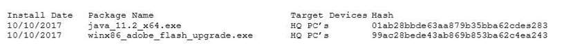 A security administrator has found a hash in the environment known to belong to malware. The administrator then finds this file to be in in the preupdate area of the OS, which indicates it was pushed from the central patch system.