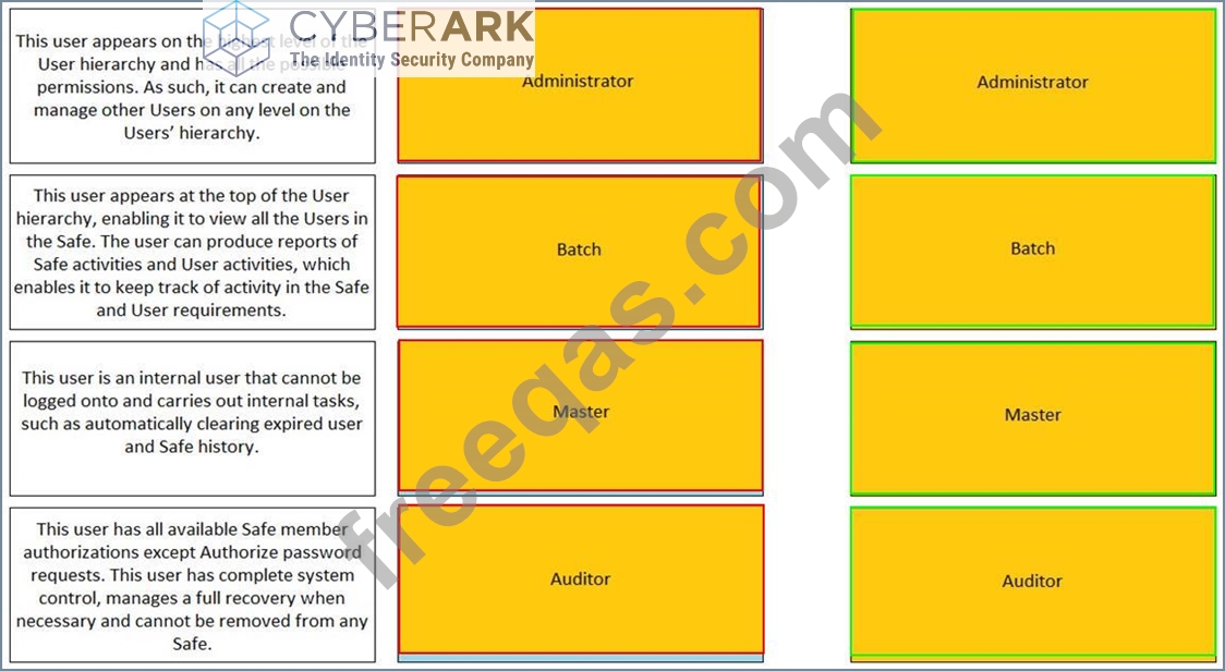 Match the built-in Vault User with the correct definition.