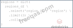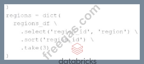 The resulting Python dictionary must contain a mapping of region-> region id containing the smallest 3 region_idvalues.