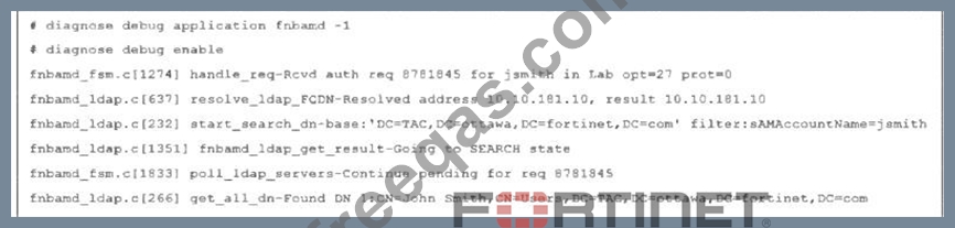 Refer to the exhibit, which shows a partial output of a real-time LDAP debug.