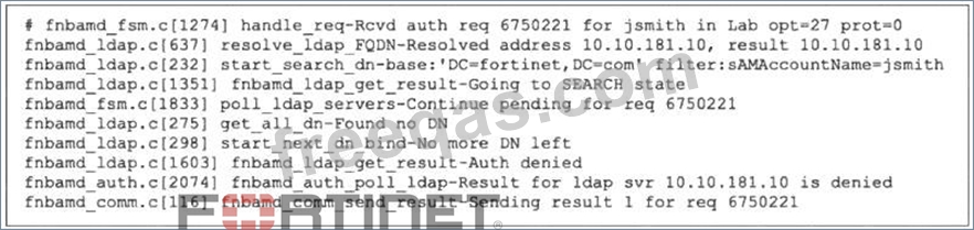 Refer to the exhibit, which shows a partial output of the real-time LDAP debug.
