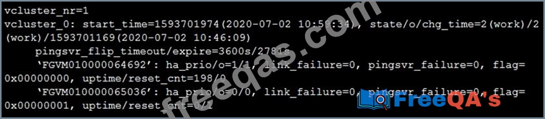 The exhibit displays the output of the CLI command: diagnose sys ha dump-by vcluster.