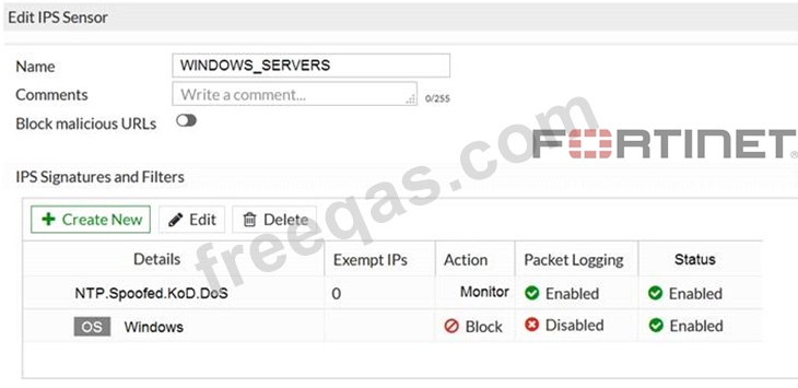If traffic matches this IPS sensor, which two actions is the sensor expected to take? (Choose two.)