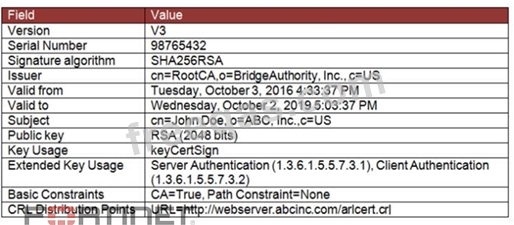 According to the certificate values shown in the exhibit, which type of entity was the certificate issued to?